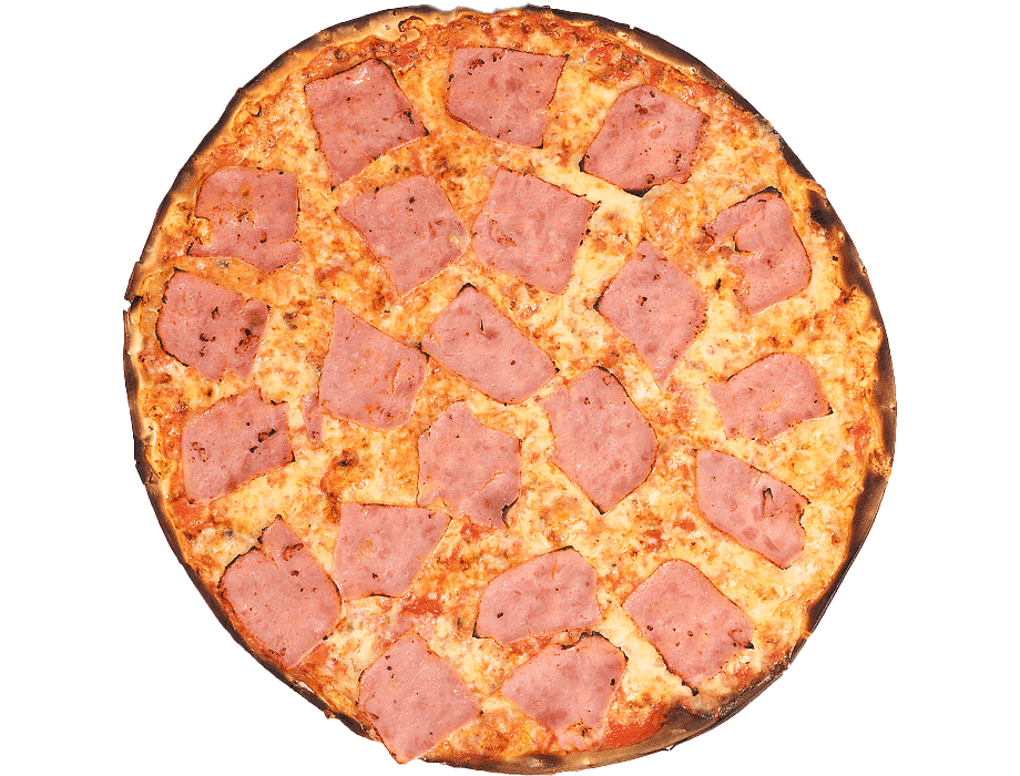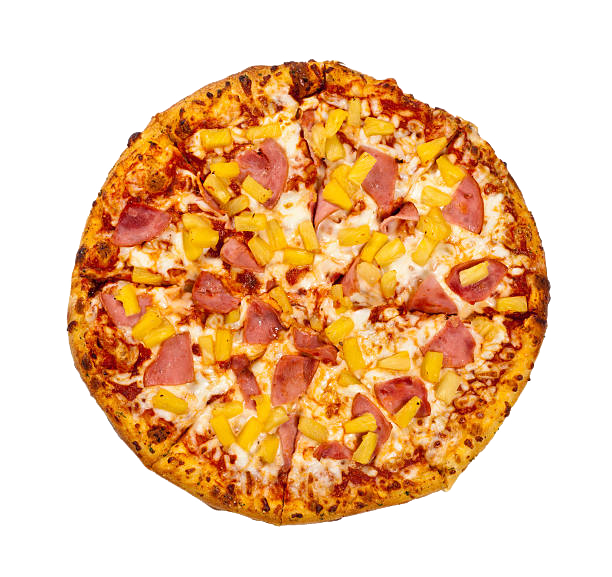 Piña, jamón de pavo, orégano y aceite de oliva.