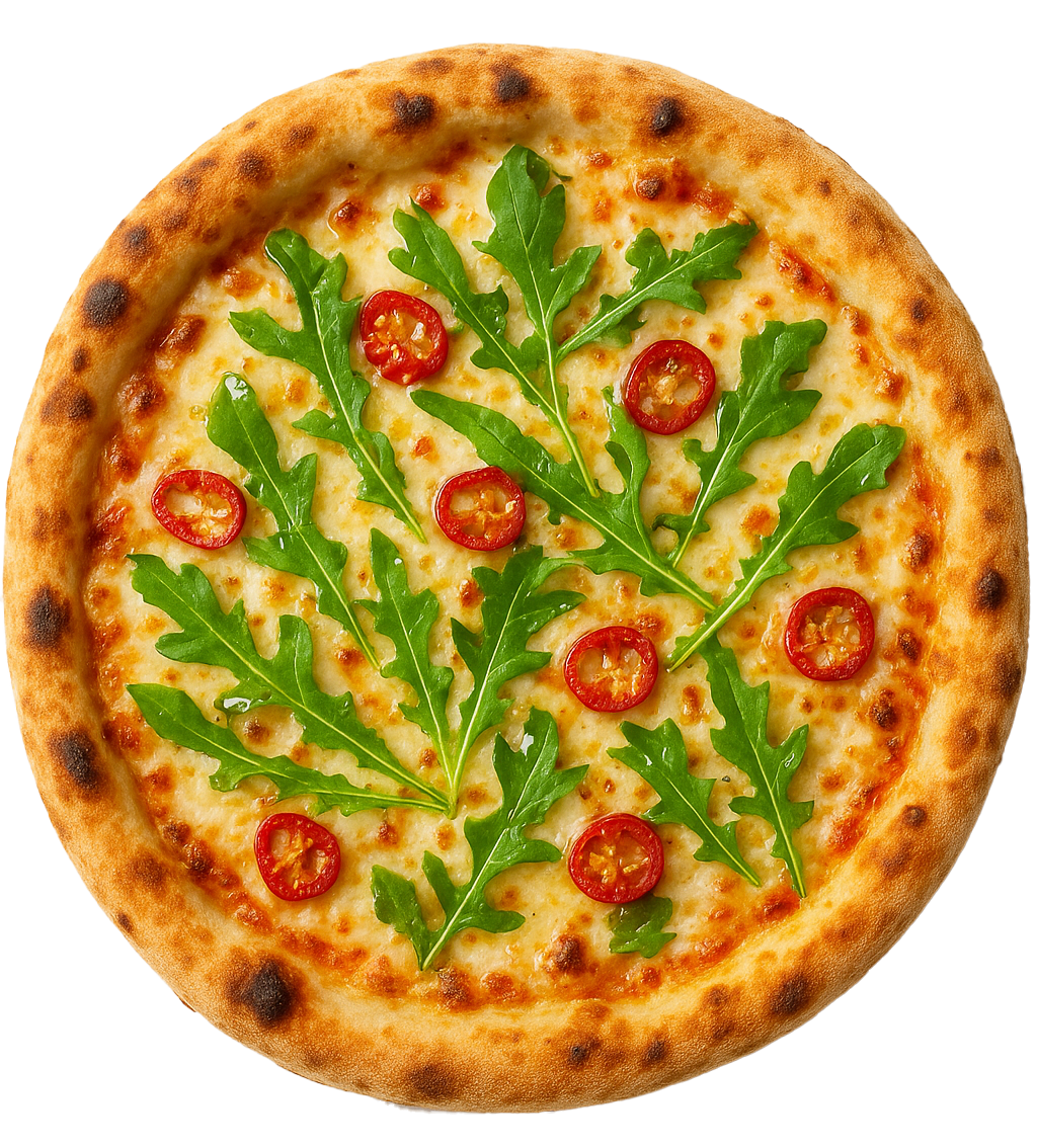 Rúcula fresca, pepperoncino (aji seco), aceite
